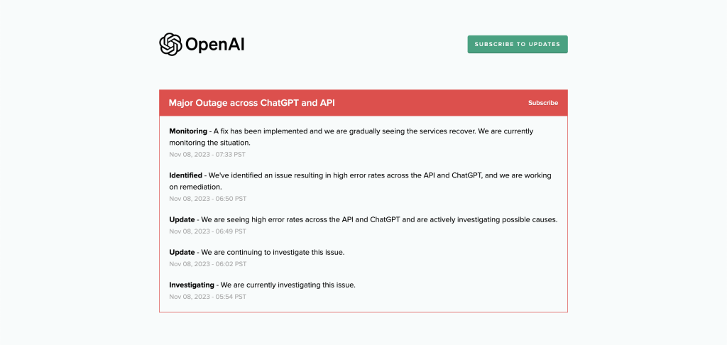 It is unclear whether the downfall may be connected to the issue of new AI tools OpenAI recently announced to start-up, but many global companies could be facing bigger logistic and infrastructural obstacles due to this inconvenience.