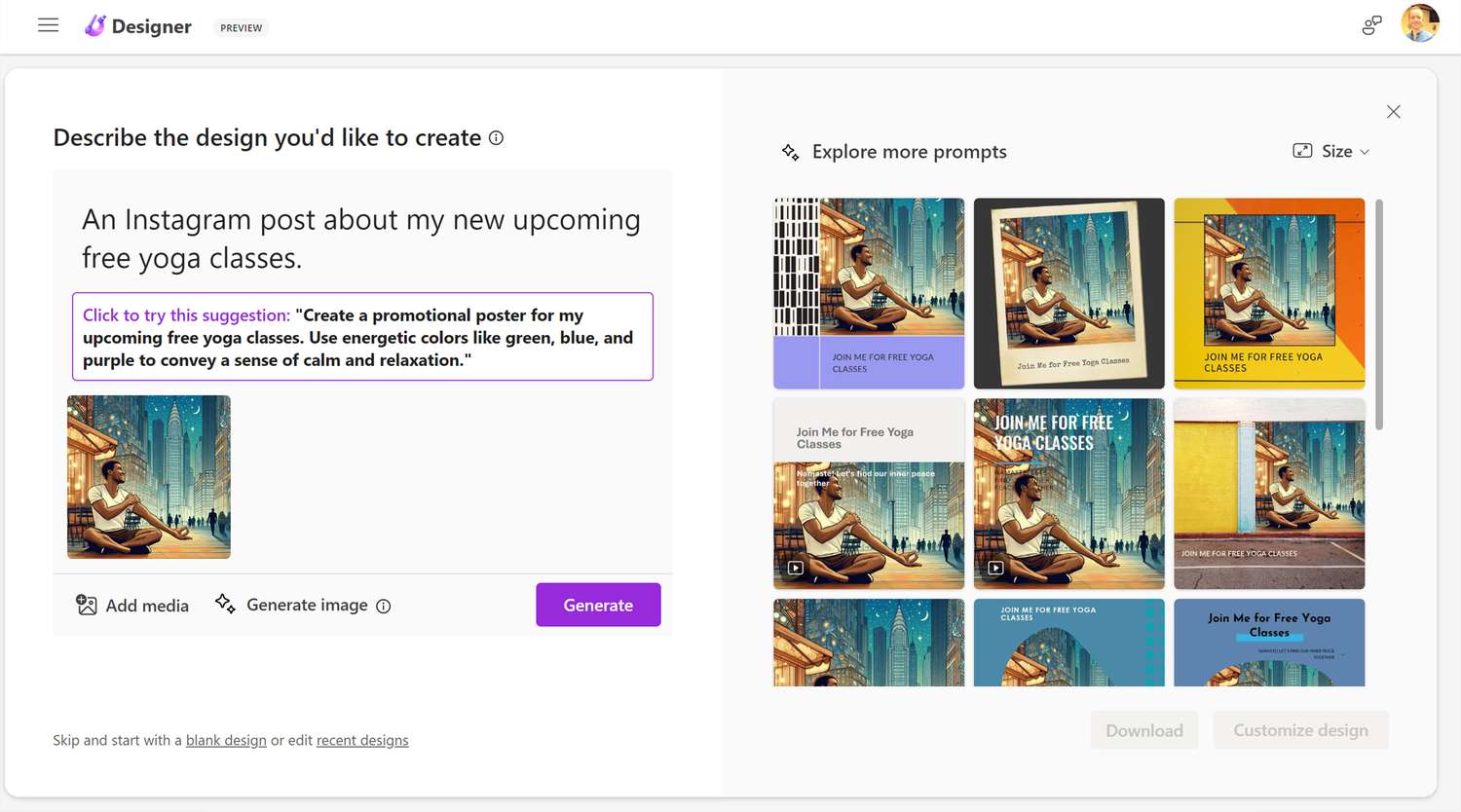 If you select Create design, a new browser tab will open with Microsoft Designer's web-based tools for turning the AI image into a social media graphic for platforms such as Instagram and Pinterest.