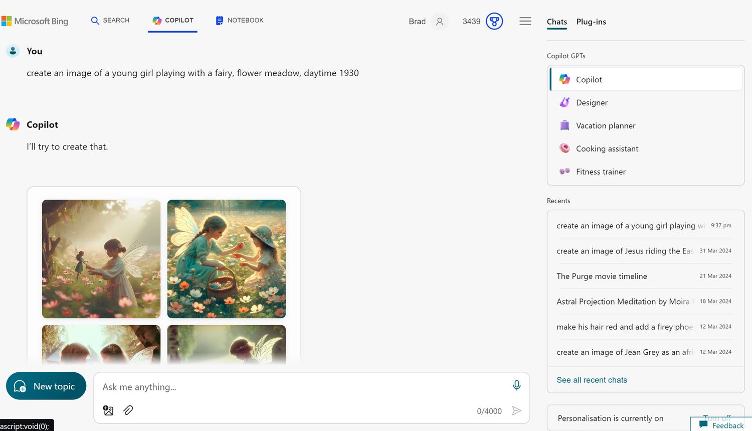 With Copilot, you need to begin AI art prompts with something like "Make an image of..." or "Create a picture of..."