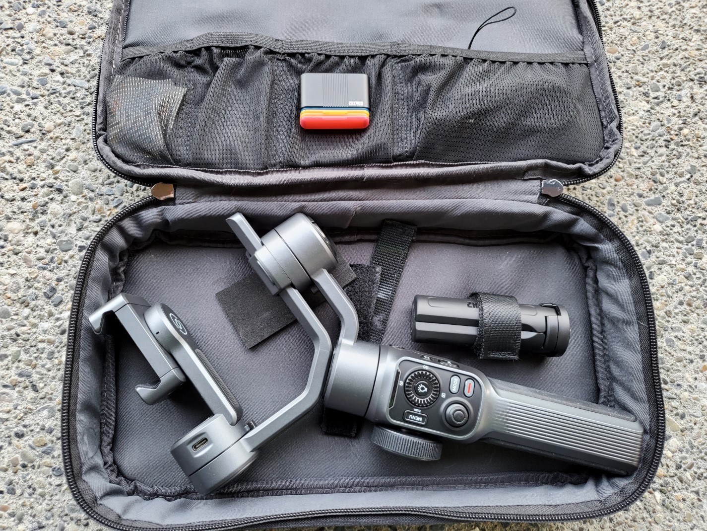 I was sent the Zhiyun Smooth 5 combo package to evaluate and appreciate the opportunity to check out the carrying/storage bag and one magnetic mounting light with four color filters. You can mount two lights on the Smooth 5, and eventually, you will be able to buy a second at a $36 price.