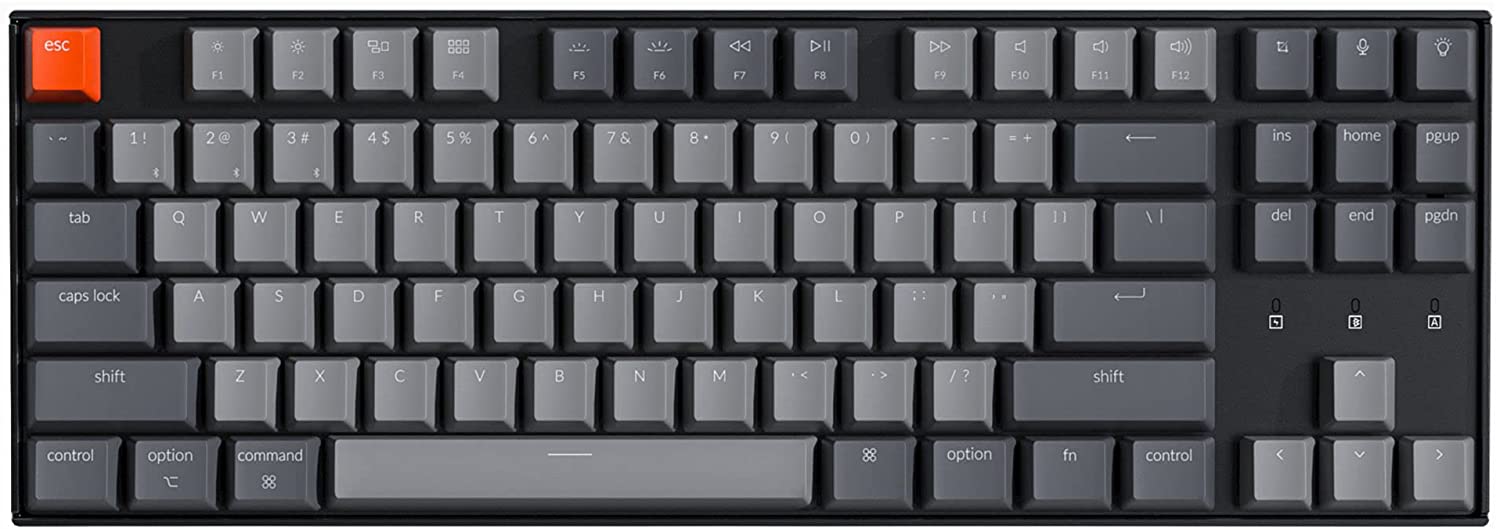 The Keychron K8 is what's known as a "tenkeyless" keyboard. It downsizes the full-sized layout by skipping the number pad. This format is a popular option for those with limited desk space and anyone that wants a bit more mousing room. I believe it's the best balance for anyone that does any serious text editing, due to the inclusion of keys like home/end, pg up/down, and delete, which smaller form factors like 65% and 60% keyboards lack.