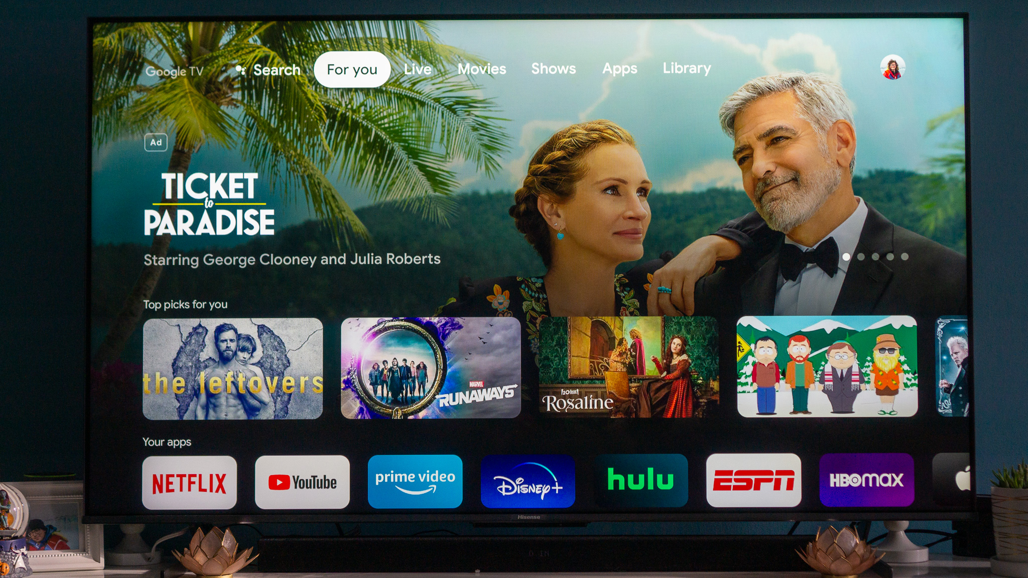 Hisense's TV comes with Google's main hub interface that offers a bundle of various streaming options on the home screen, including promoted shows, films, and all my favorite apps like Netflix, YouTube, and Prime Video. After I'd watched some shows and films across various platforms, the home hub pulled my shows from the apps and thoughtfully displayed them on the home page for future viewing.