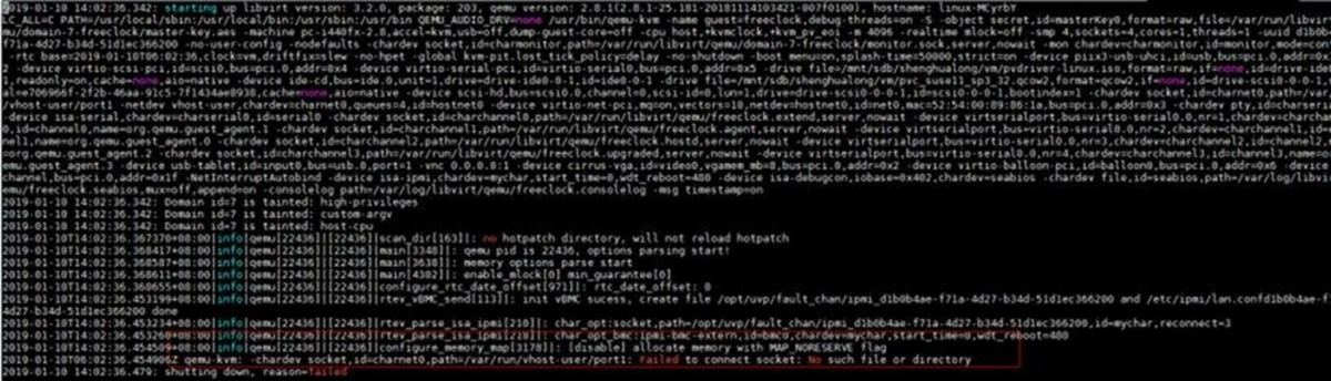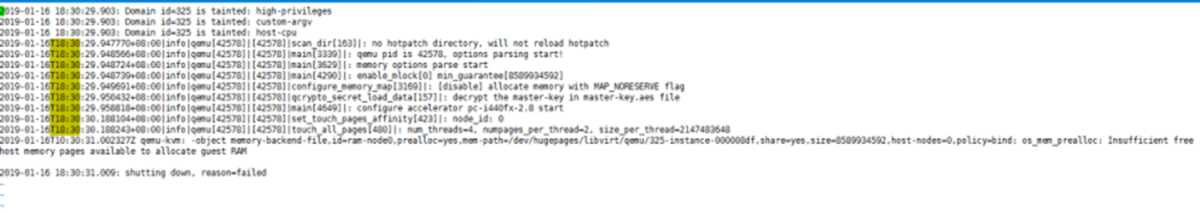 1. Insufficient memory leads to failure, take instance-00001840 VM for example, the /var/log/libvirt/qemu/instance-00001840.log log is as follows: