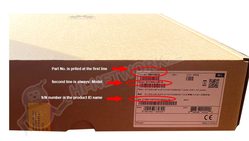 When some customers buy Huawei network routers or switches from HI-NEWTORK.COM, they often find that Huawei machine have two names or even more.Generally speaking, the box will have Part No.andModel name. Sometimes, one model may have more than 3 part numbers, which always make customers feel confusing. Today, let us unravel the mysteries of HUAWEI part numbers some basic information, which will help customers quickly find what items that they are looking for.