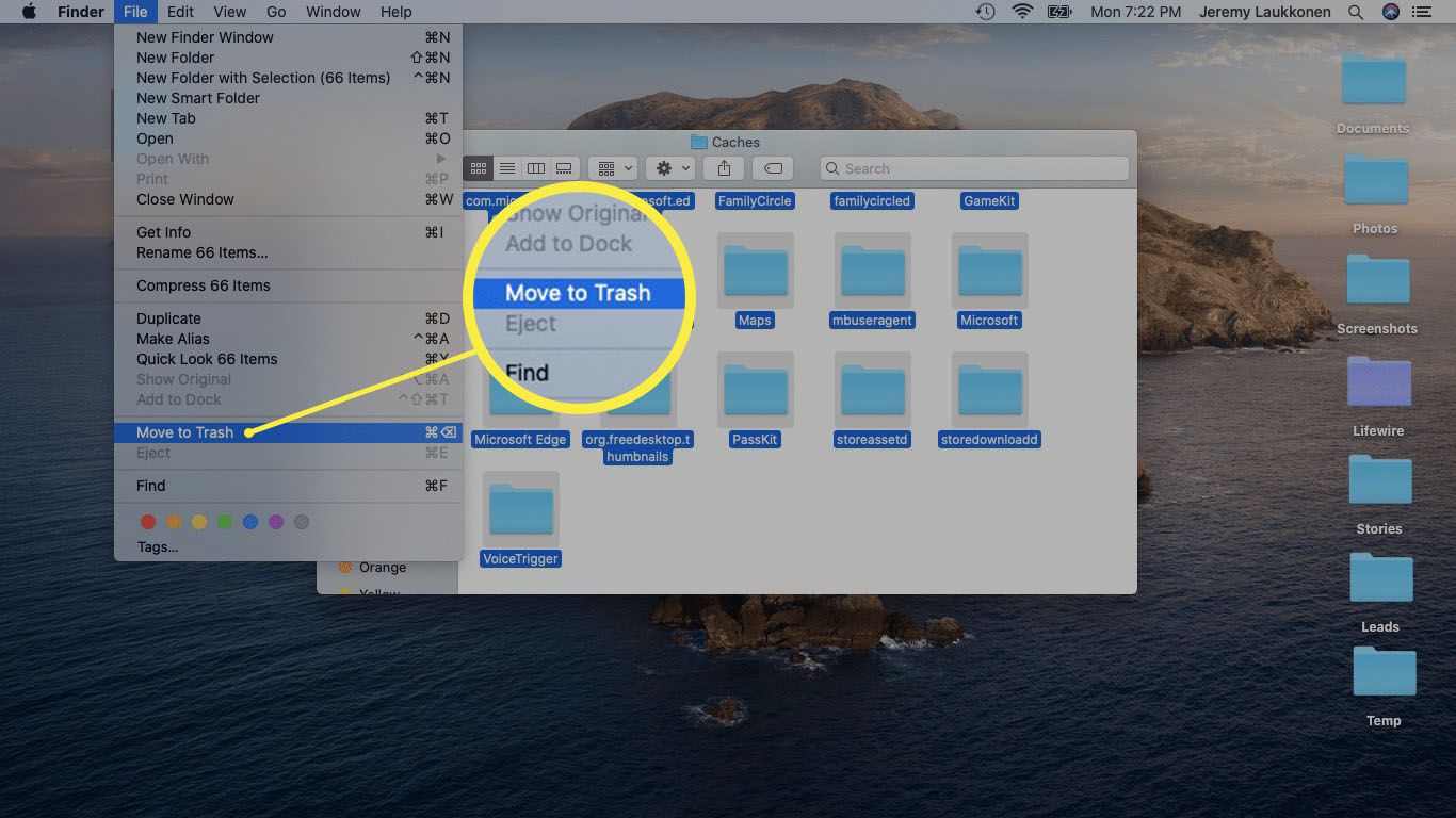 Cache files can take up a large chunk of your Other category, and they won't show up when you search for old and unwanted files as you learned to do in the previous section. To clear out cache files, you need to navigate to the location where they are stored and delete them.