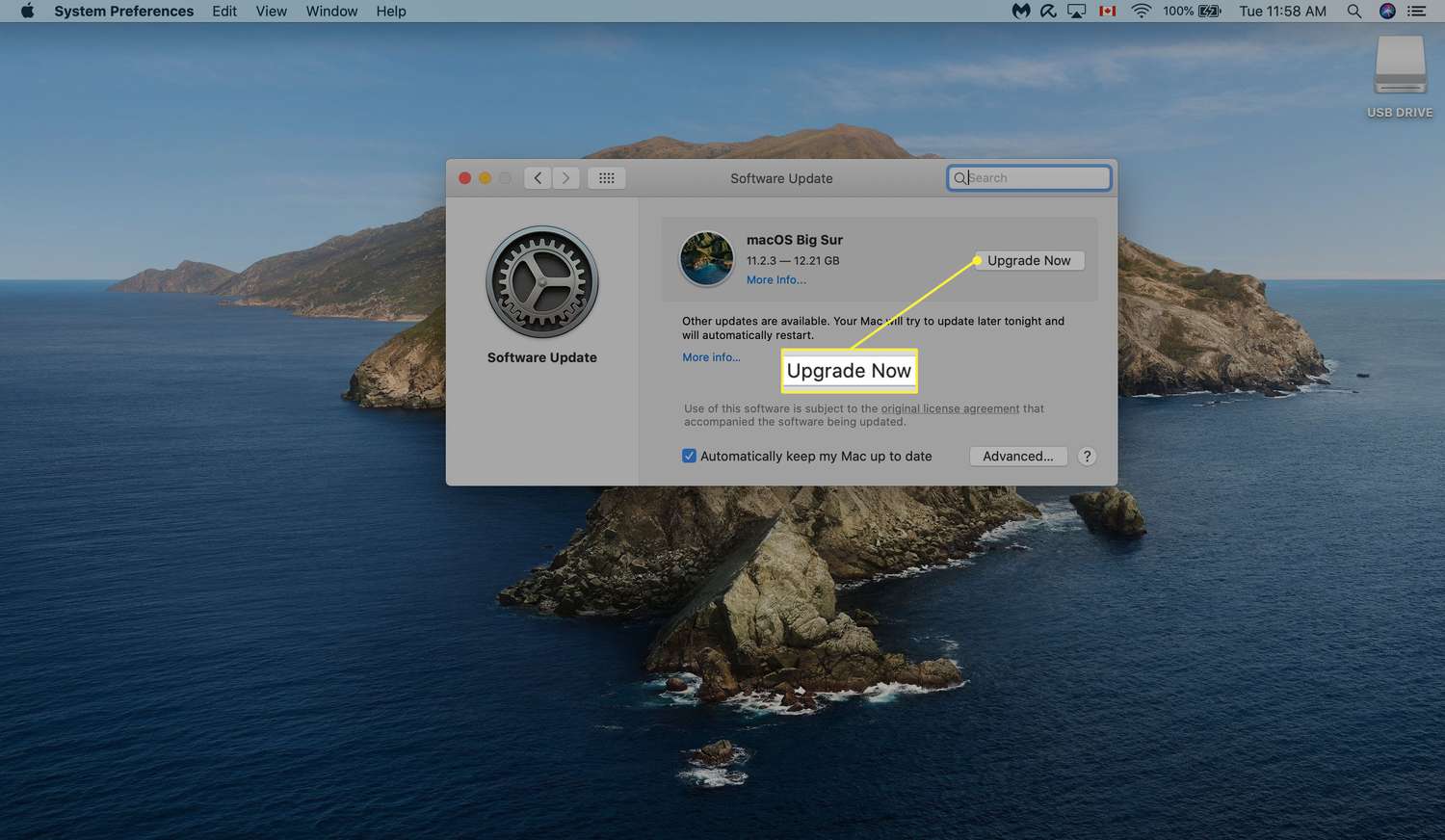 Click Update Now. If you haven't upgraded to macOS Big Sur yet, click Upgrade Now instead.