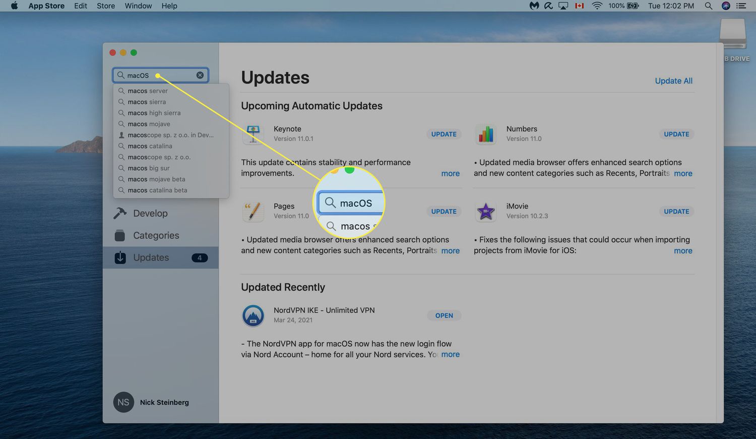 If a macOS update is available, click Update. You'll also be able to download updates for Mac apps on this screen.