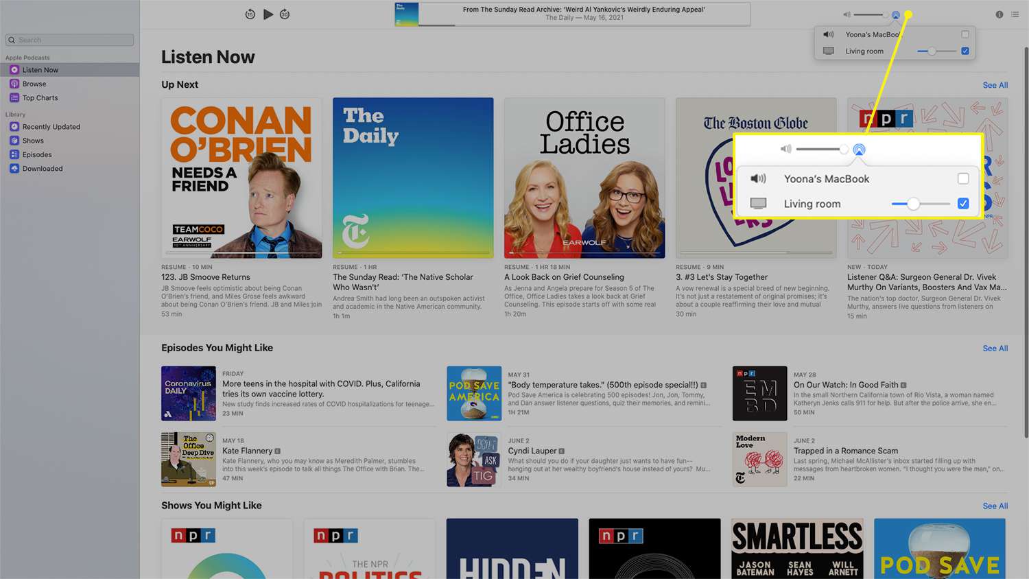 - Within apps like Apple Music, Apple Podcasts, or Apple TV, look for the AirPlay audio or display icon.