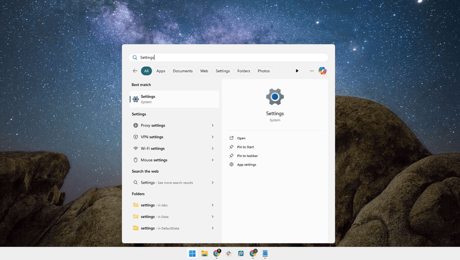 Open Settings by searching for it. It's also available by right-clicking the Start button.