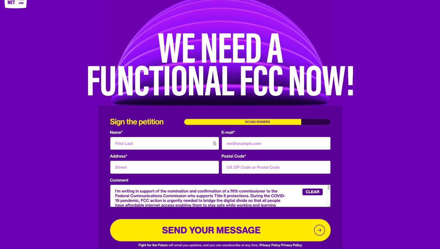 - In October 2021, in what's being seen as a prelude to a Net Neutrality push, President Biden nominated Jessica Rosenworcel to lead the FCC and Gigi Sohn to another FCC seat, putting a Democratic majority in place.