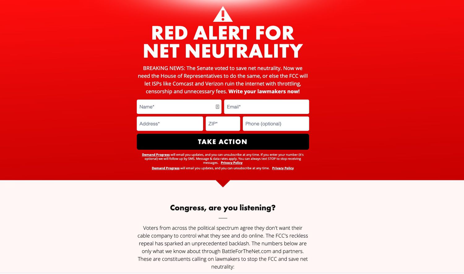 At Fight for the Future's Battle for the Net site, you can still contact your representative to tell your position on Net Neutrality. The site prompts you to fill in information to send an email automatically to your area's congressperson. Fill in your name and other requested information, and the site sends the email for you.