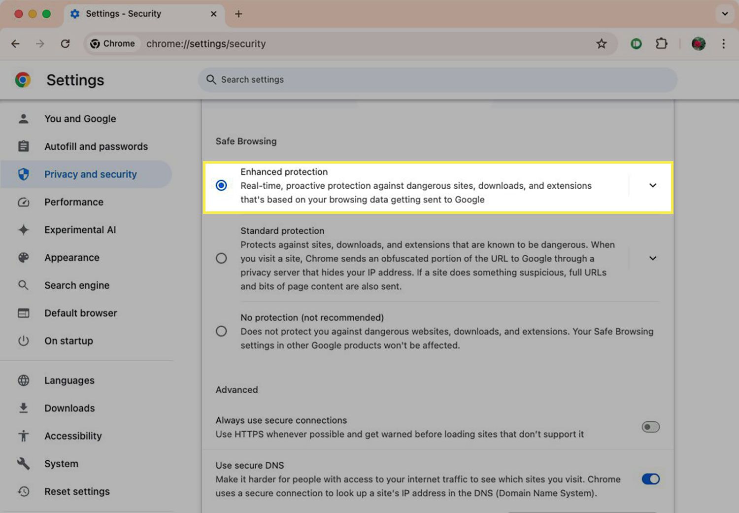 Enhanced Safe Browsing in Google Chrome is off by default, but you can turn on the feature easily on your desktop and mobile device. You can turn on Enhanced Safe Browsing on your Windows or Mac computer the same way.