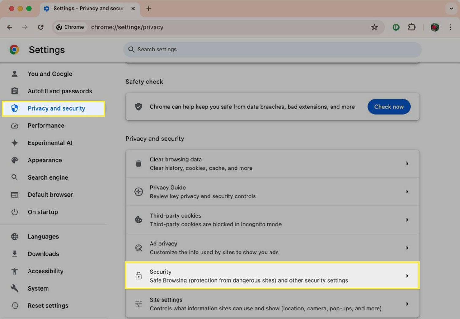 - Mobile: three dots > Settings > Privacy and Security > Safe Browsing and select Enhanced Protection.