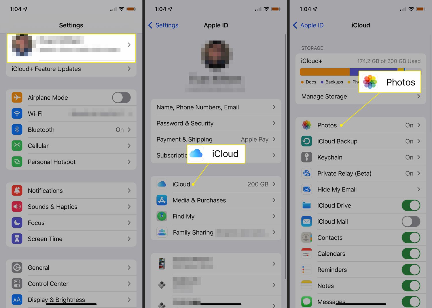 On the Apple ID screen, select iCloud > Photos.