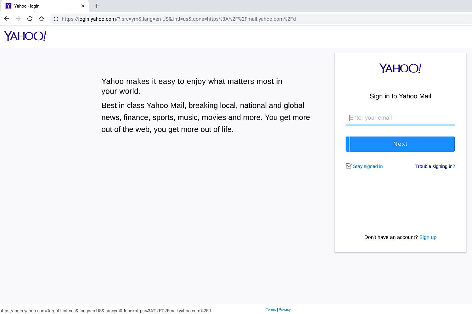 On the Yahoo Mail sign-in page, tap or click on the "Trouble signing in?" link. This will take you to the start of the account access recovery process. On this page, enter any one of four pieces of information to start the recovery process:
