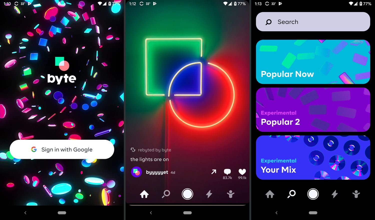While Vine had very little competition when it launched in 2012, Byte arrives in a more crowded marketplace, with TikTok as one of its biggest rivals. The biggest thing Byte has going for it is the nostalgia factor. Vine, its now-defunct predecessor, is much loved. That app has lived on in a way through compilation videos posted to YouTube and other video sites.