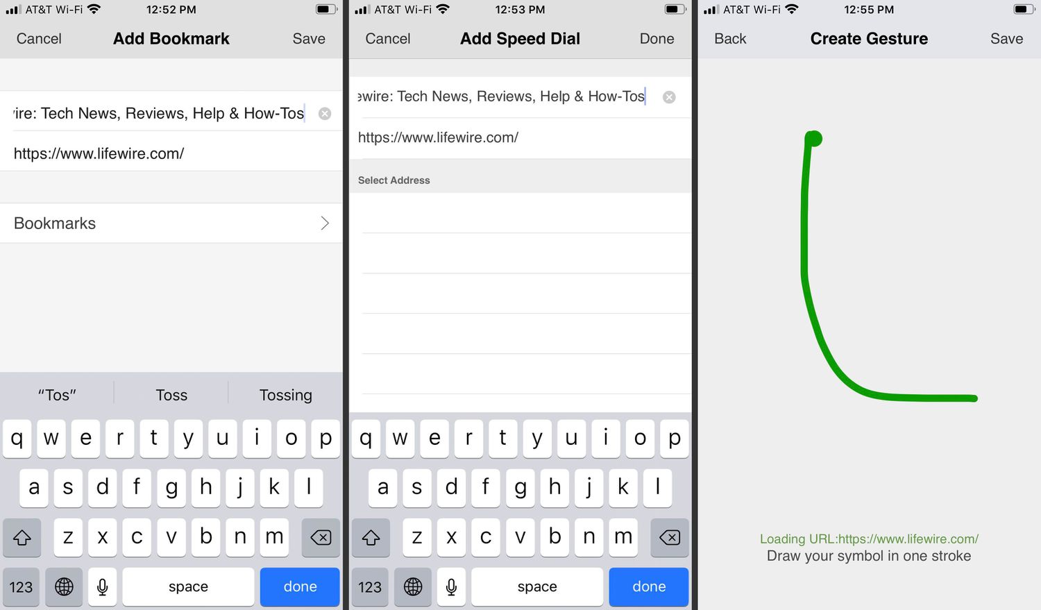 - Tap Add Gesture to create a quick shorthand design to launch a page. For example, create a simple L gesture to launch Lifewire.com.