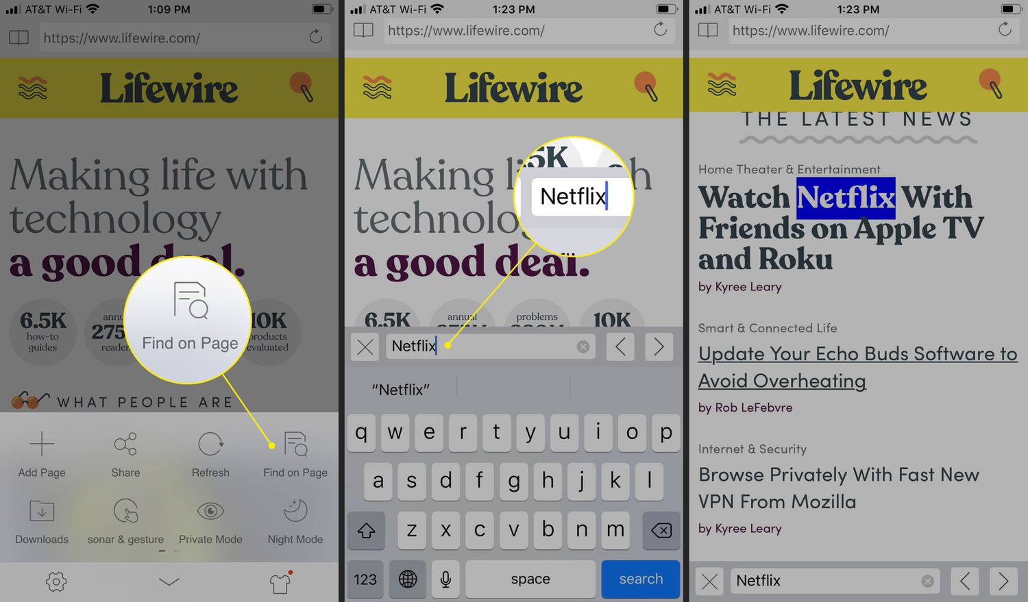 This function lets you search for and find specific text on a web page. Tap Find on Page to display a search box. Type the search query, tap Search, and see the results.