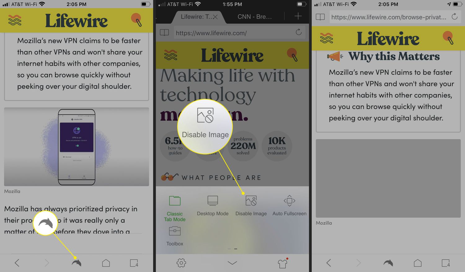 Tap Disable Image to prevent Dolphin from loading images. This limits your data usage and allows pages to load faster.