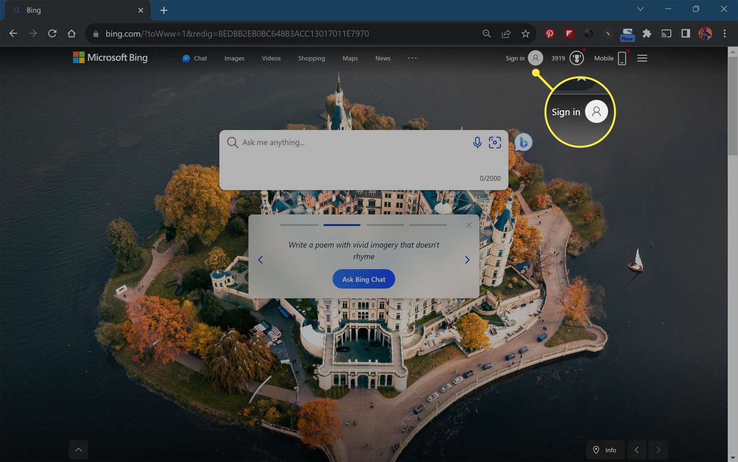 - Open Google Chrome, visit the Bing website and sign in to your Microsoft account.