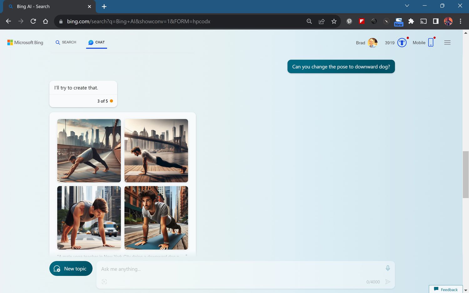 For comparison, using the Bing app or the Bing website in the Microsoft Edge web browser allows up to 10 interactions. Logging into a Microsoft account on either unlocks an additional 20 interactions, giving you 30 interactions.