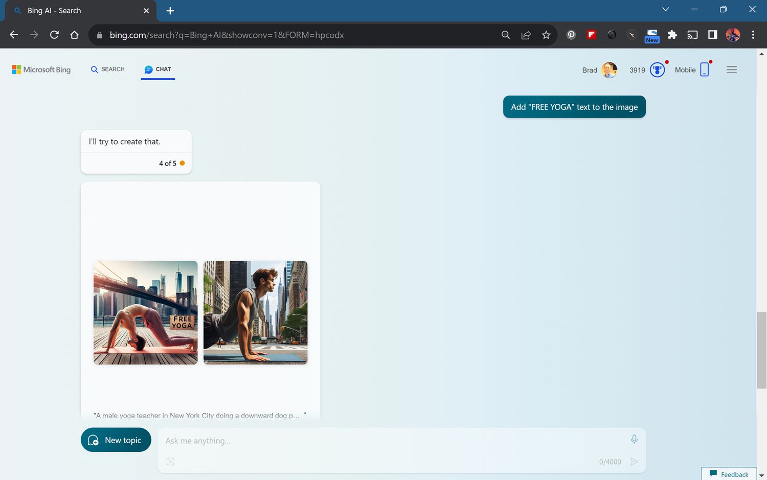 Here's a quick example of how to use Bing Chat on Chrome to create an AI generated DALL-E 3 image and modify it.