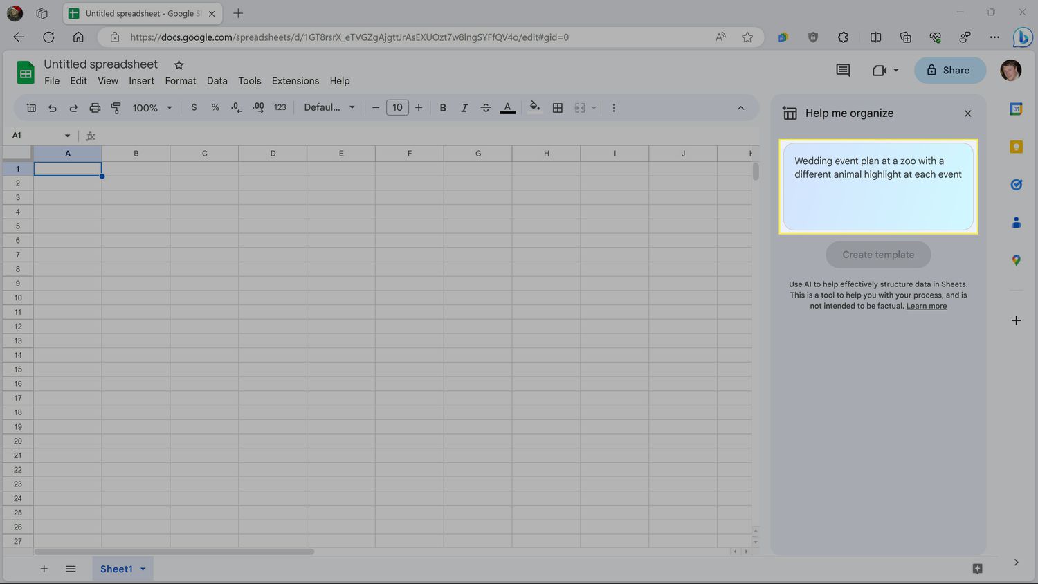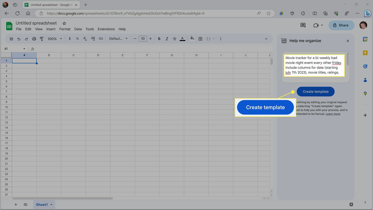 - Create or open a spreadsheet in Google Sheets, and click Help me organize.
