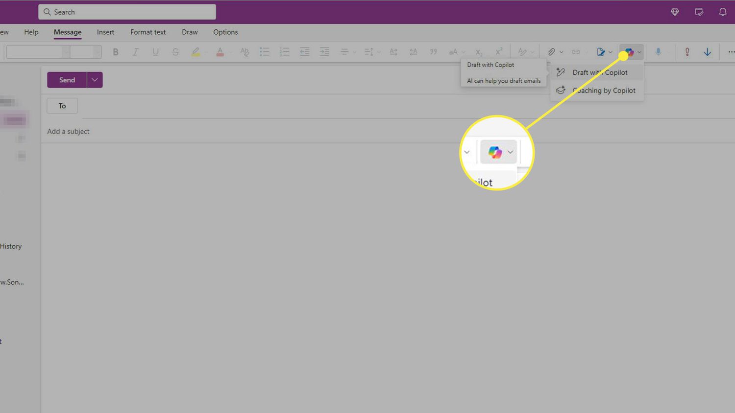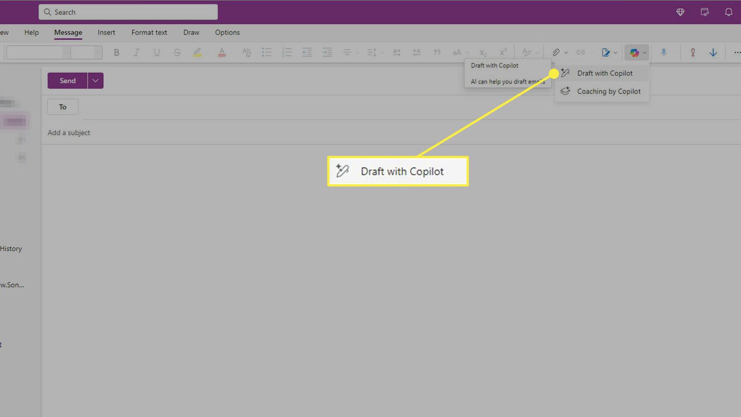 Open an existing email or draft that you want Copilot to edit with you. You can write out an extensive email (or use the Copilot draft to get you started), or you can merely state your aims for the message.