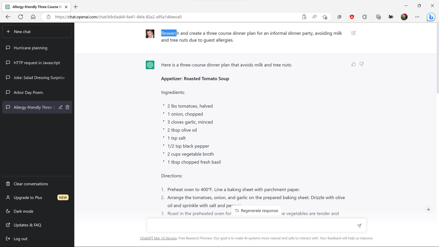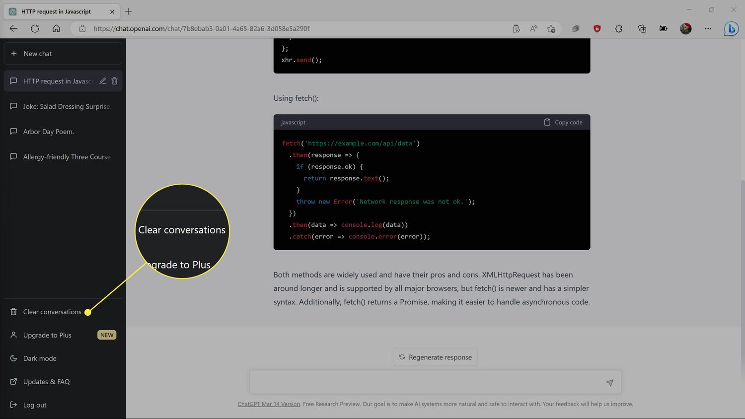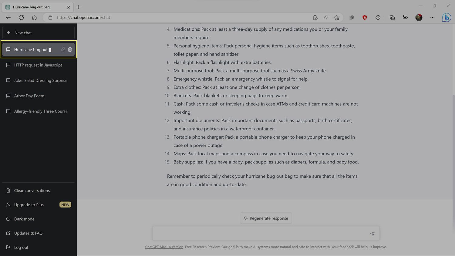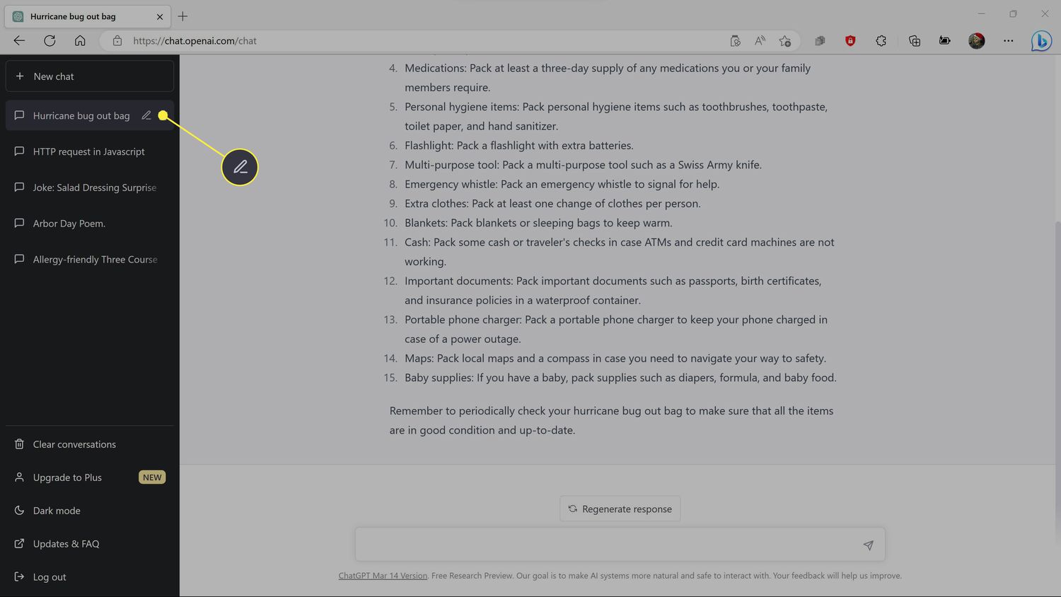 The old ChatGPT thread will open, allowing you to read it or submit new prompts to continue the conversation.