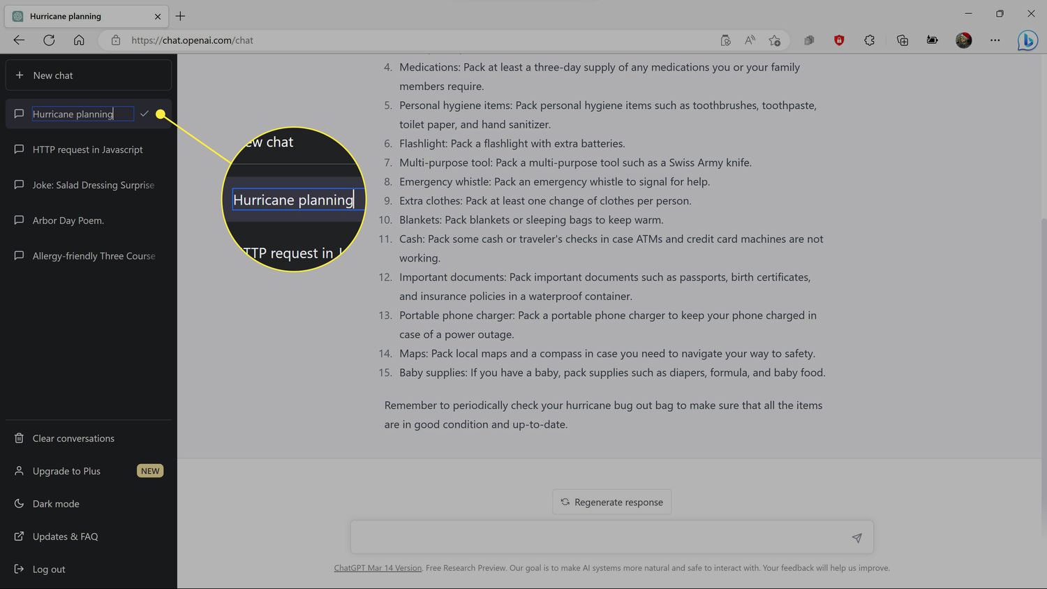 As ChatGPT goes through the process of responding to your prompt, it will automatically rename the chat thread to something related to your prompt.