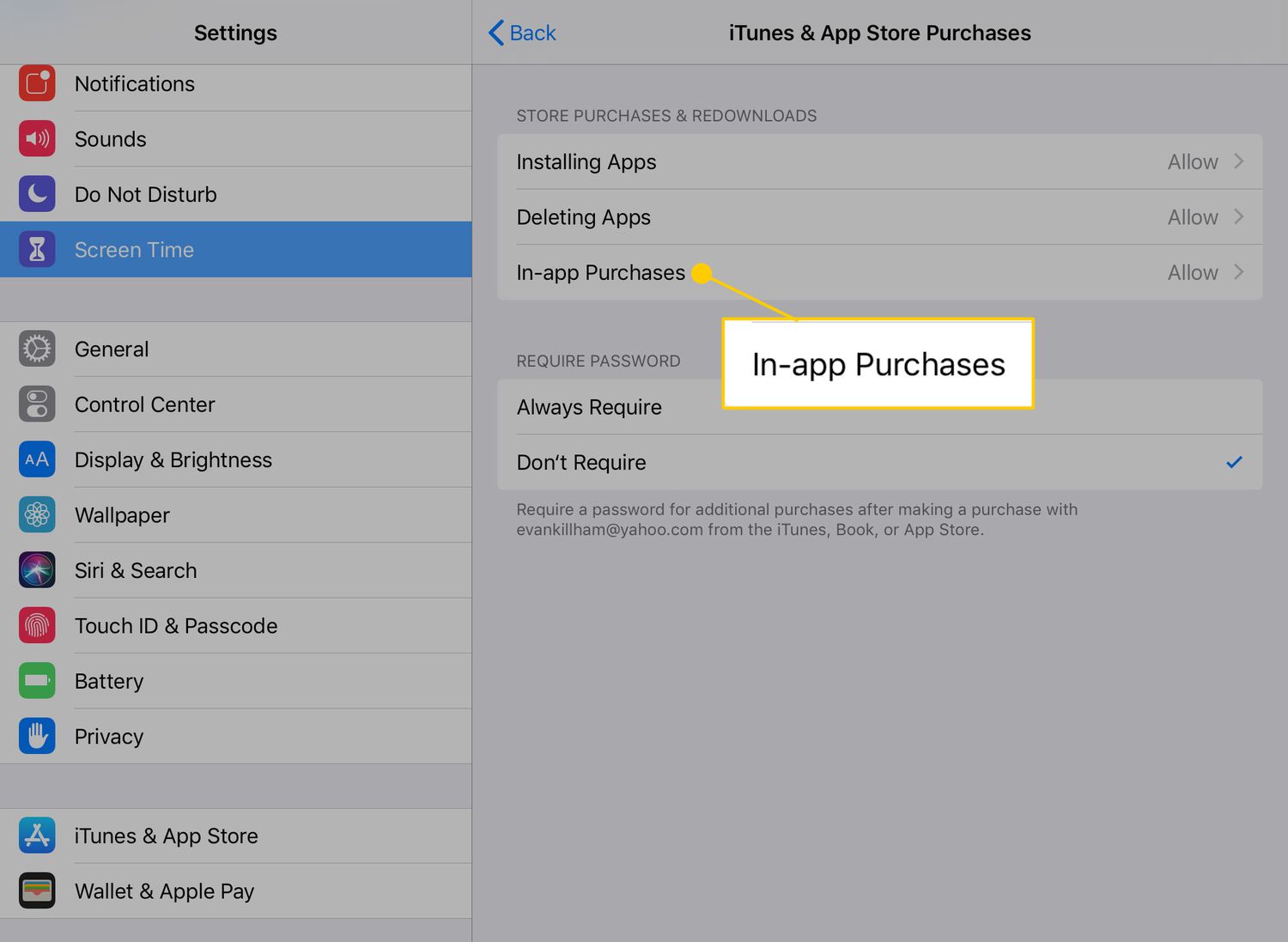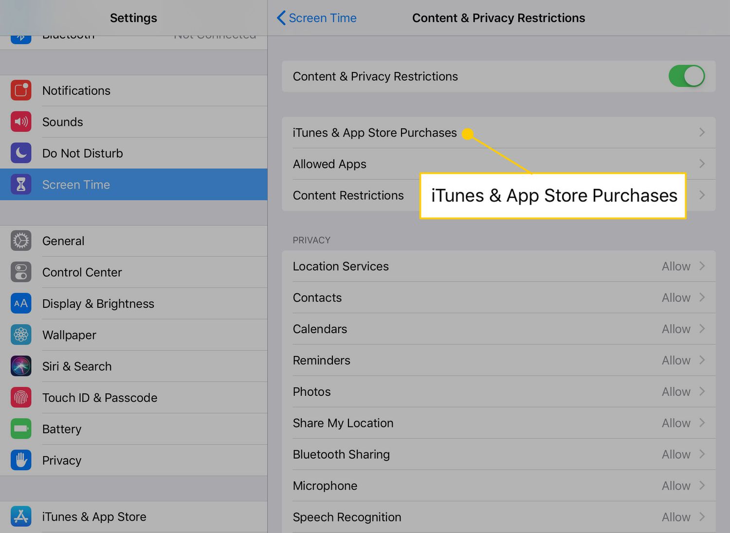 - Tap iTunes & App Store Purchases > In-app Purchases > Don't Allow.