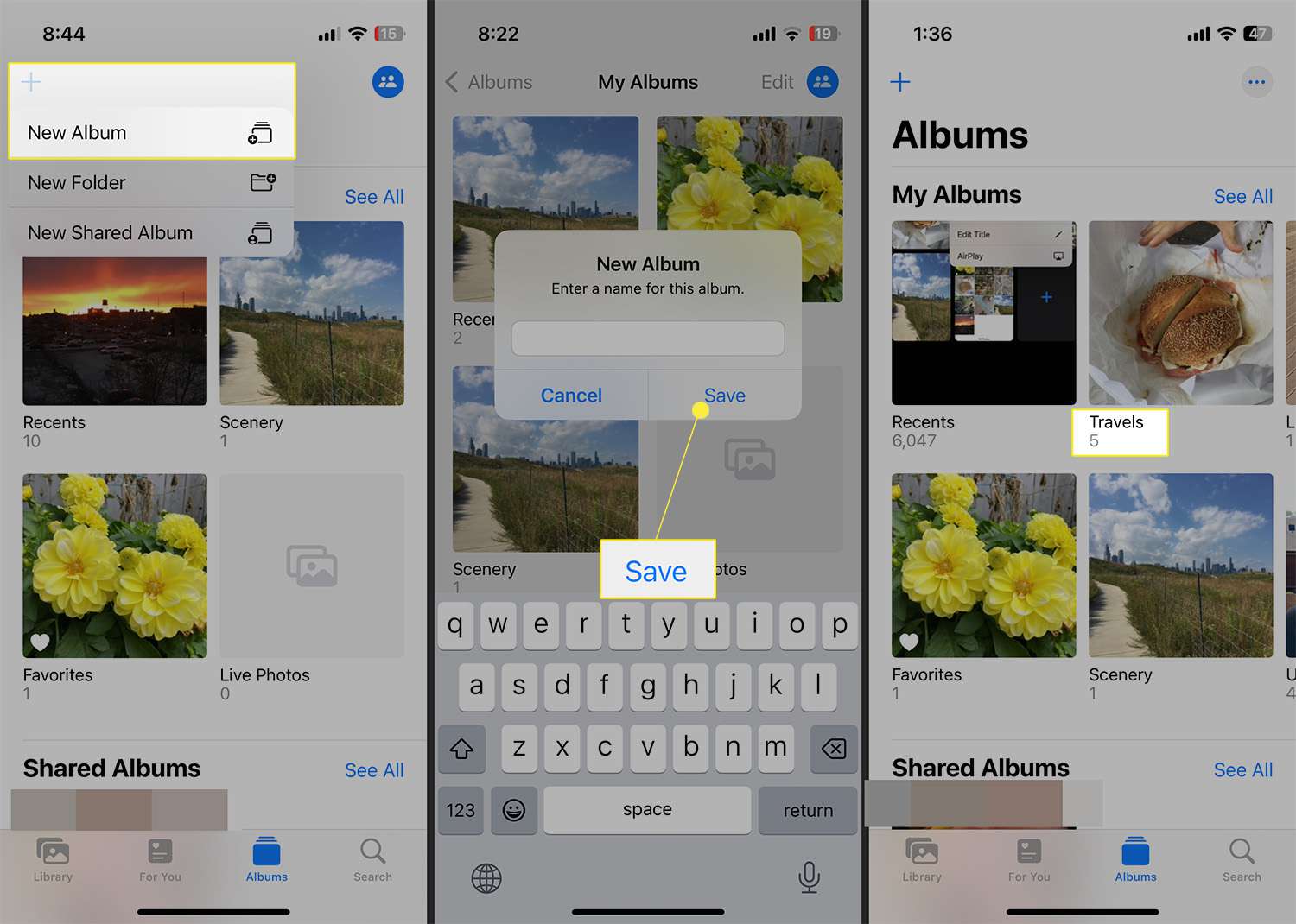 Name the album and tap Save.