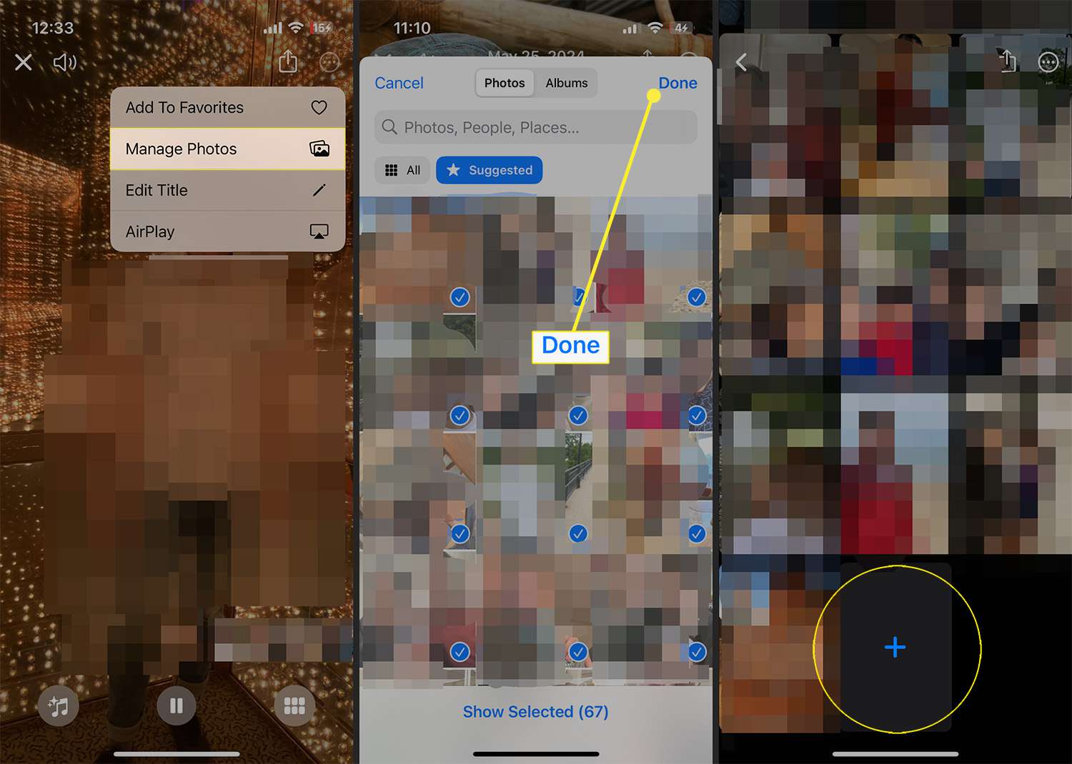 To add additional photos to this Memory slideshow, select the three dots icon > Manage Photos.