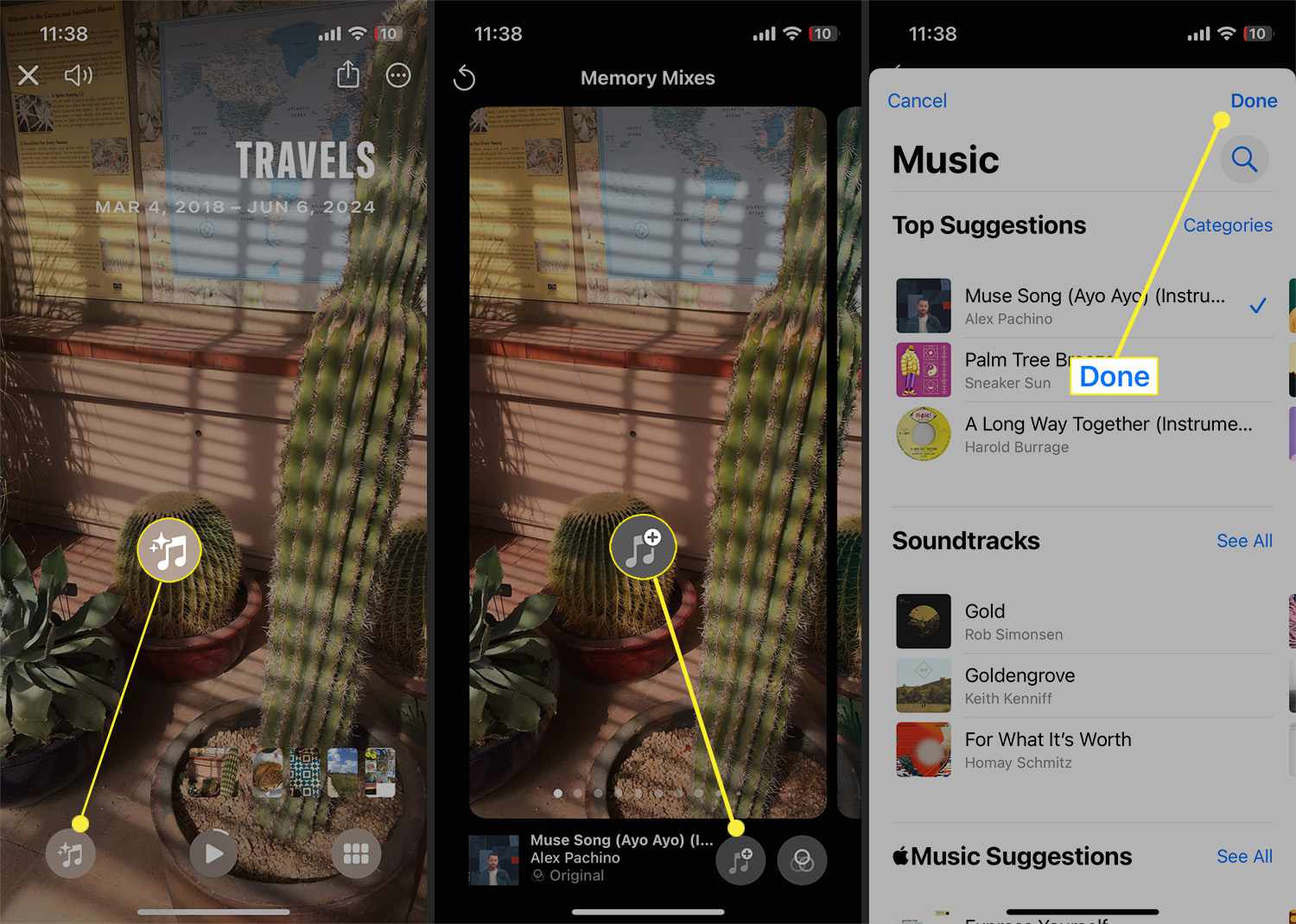 Or, tap the Add Music symbol to access songs from your Apple Music library.