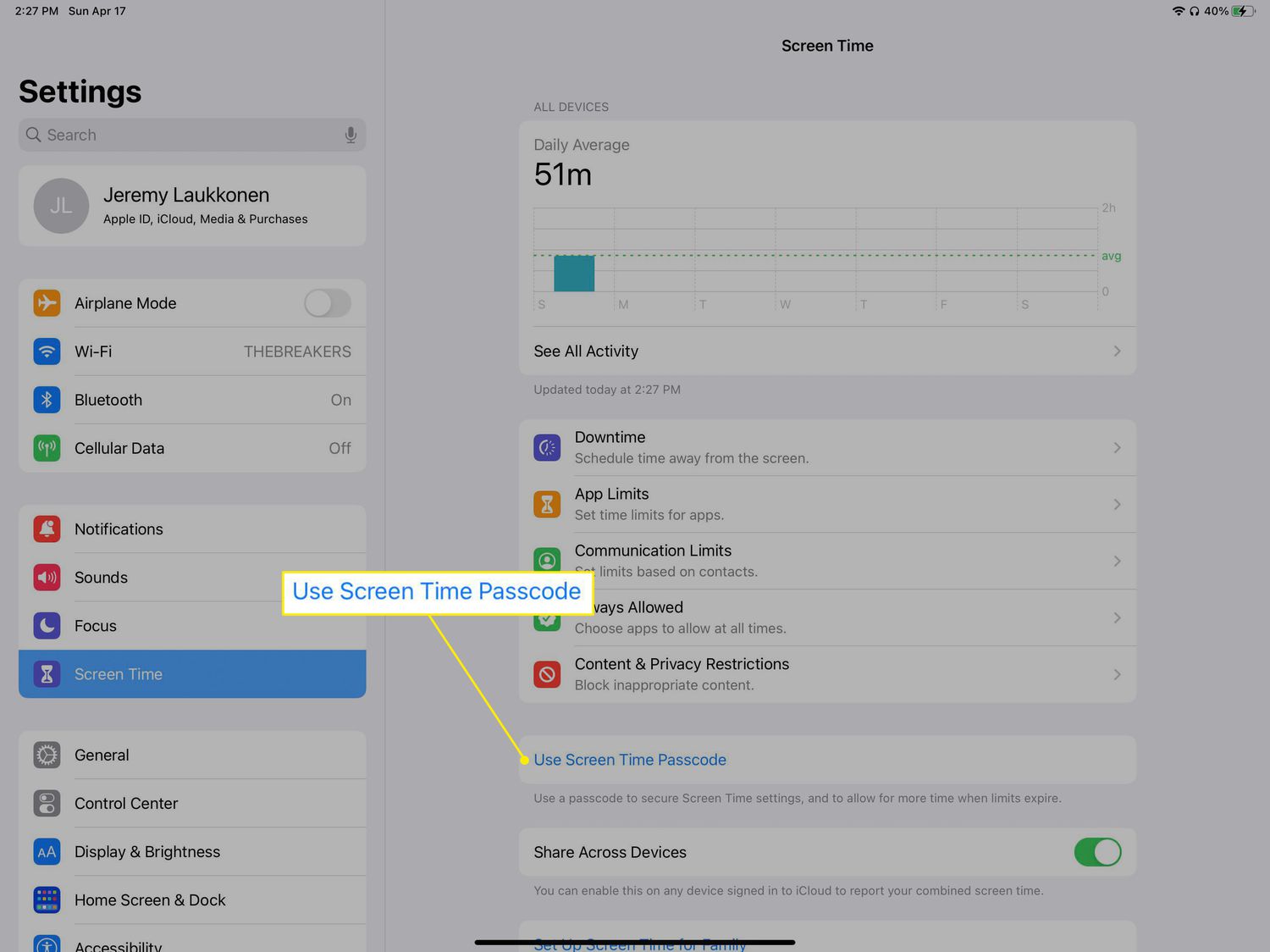 Tap Use Screen Time Passcode.