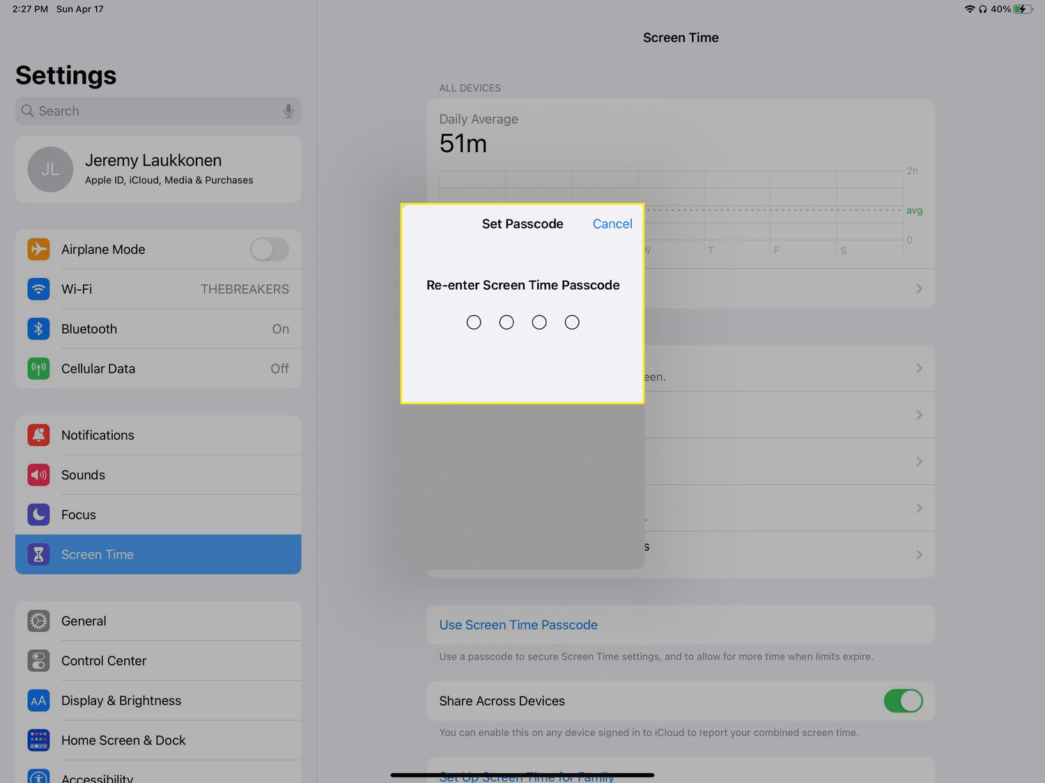 If you've already set up a Screen Time passcode, skip to Step 5.