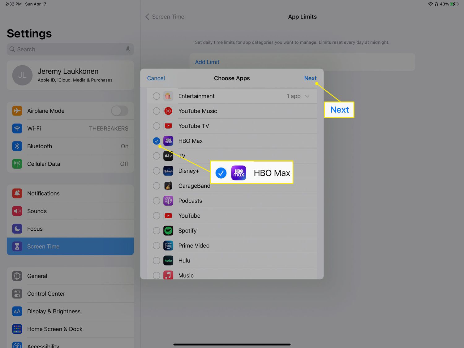 Tap App Limits.