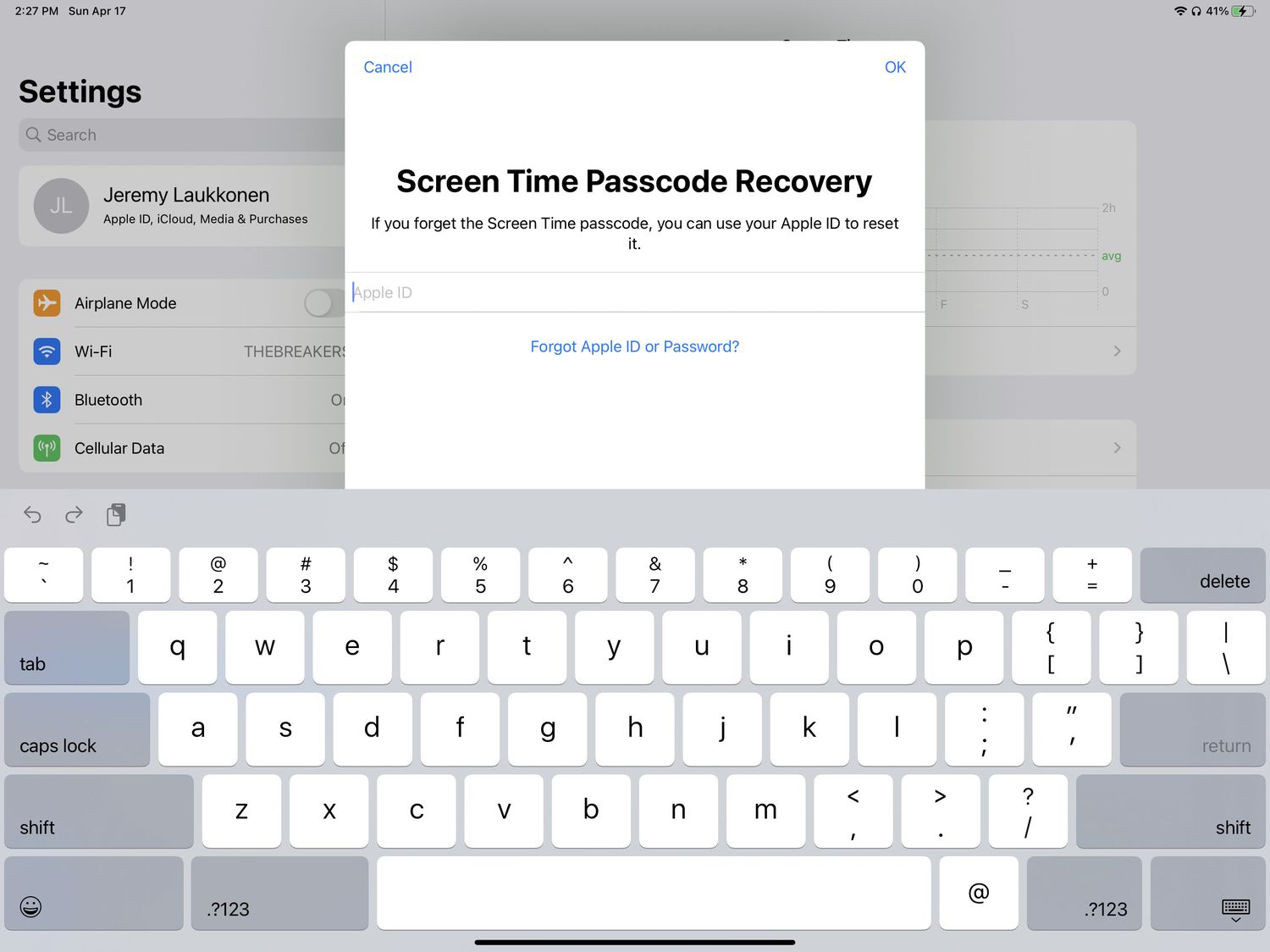 Enter your Apple ID and password, and tap OK.