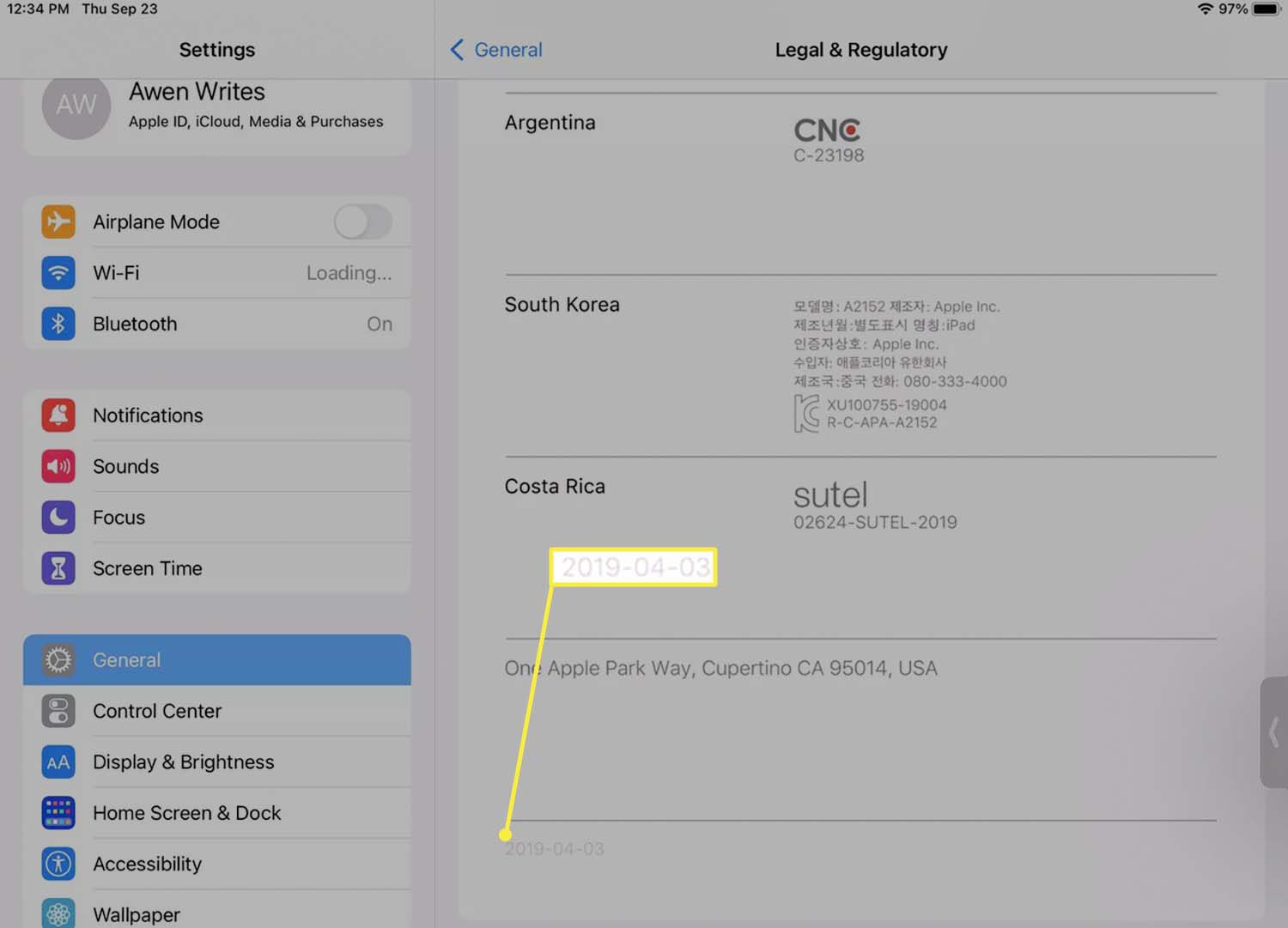 - For the sale date, go to Settings > General > Legal & Regulatory.