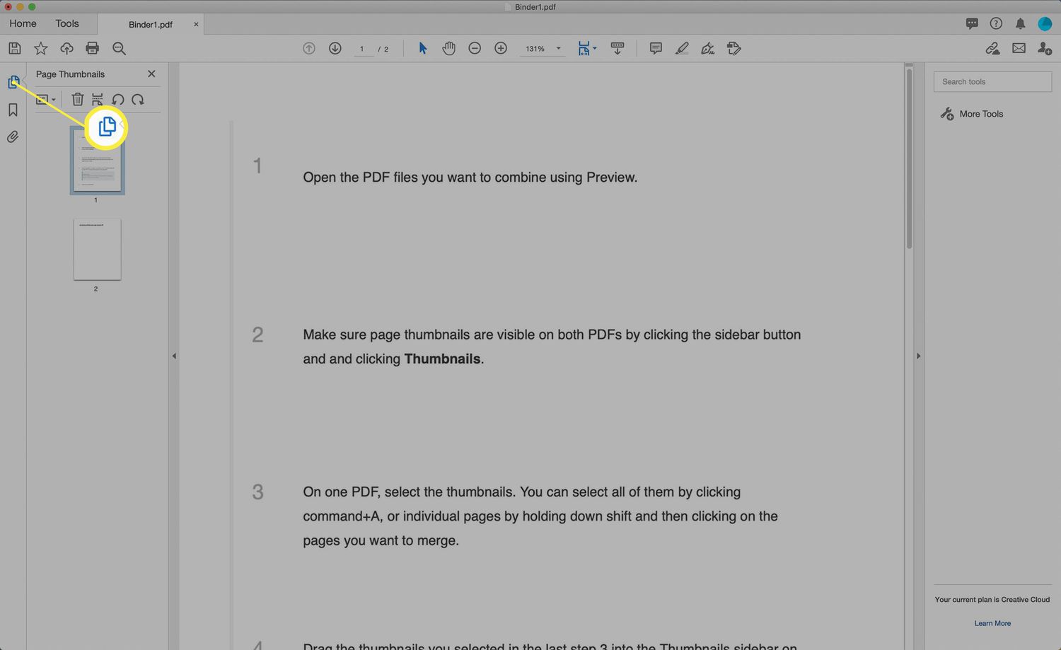 The Preview program that comes pre-installed on every Mac provides a super-simple way to combine PDF files for free. Follow these steps to merge PDFs: