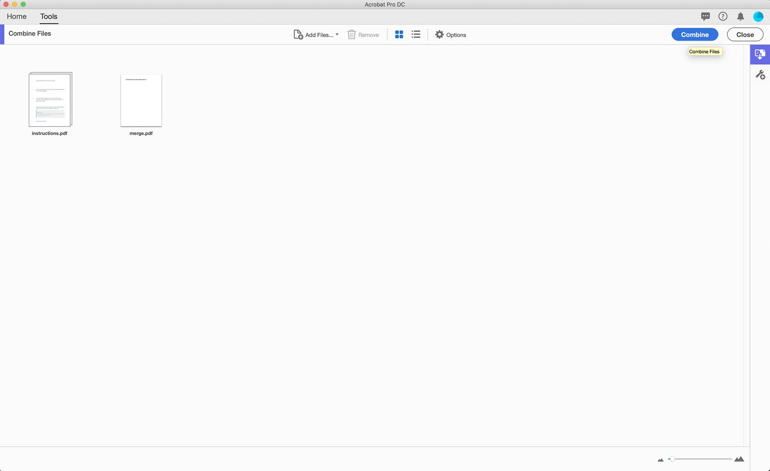 All of the files you're going to combine are displayed. You can drag and drop them to change their order in the combined PDF. When they're in the order you want, click Combine.