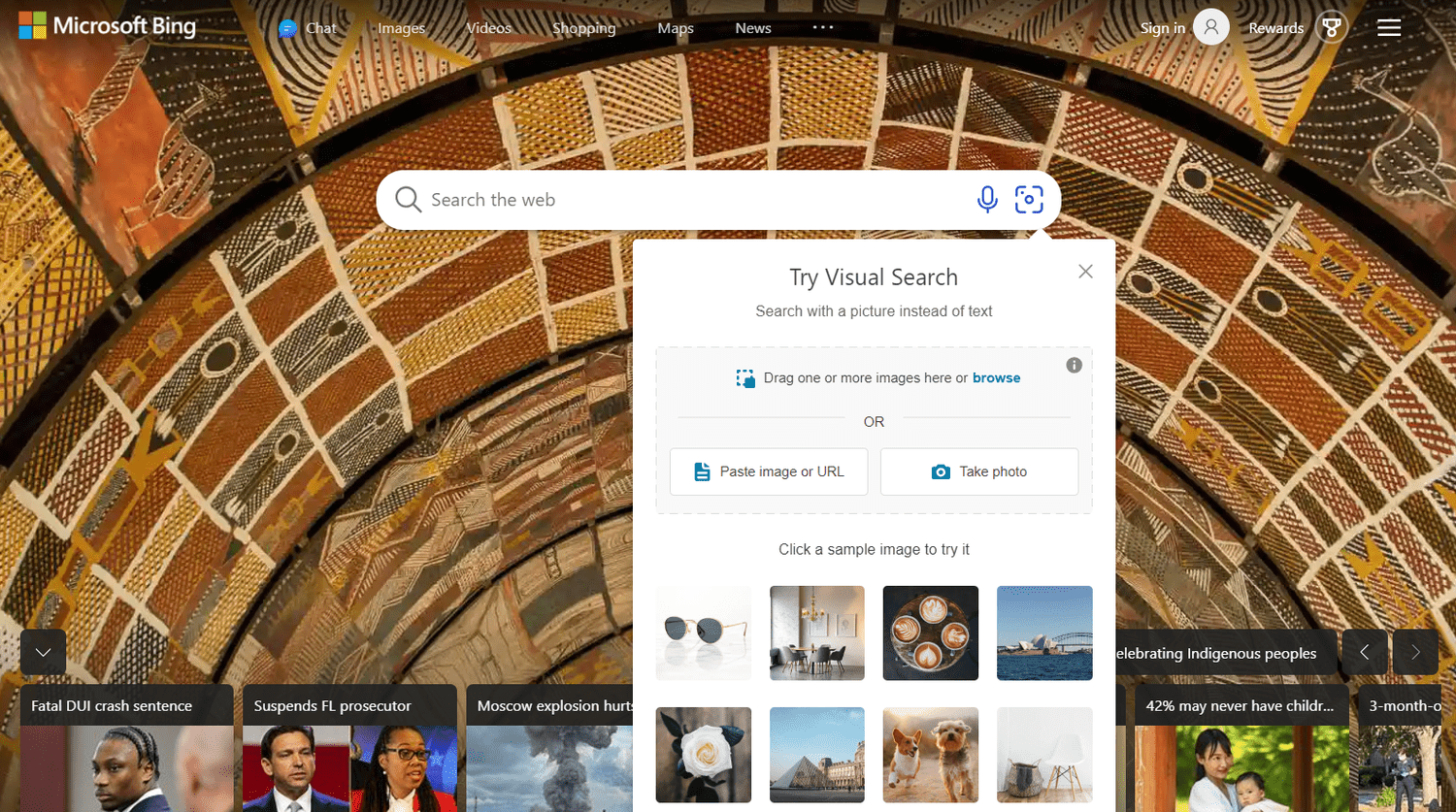Bing's search homepage is also customizable. If you prefer more white space or a less busy background, you can hide the page's menu bar, news links, and even the daily homepage image.