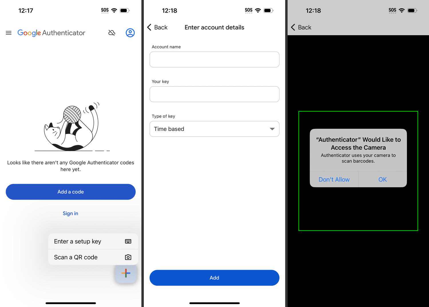 Select Scan a QR code if that's what you have, otherwise tap Enter a setup key.
