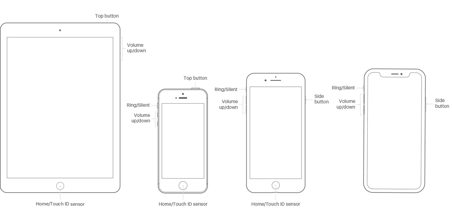 - iPad without a home button: Hold the Sleep/Wake button and a volume button until the Power Off slider appears.