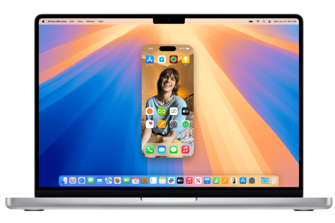 iPhone Mirroring puts your iPhone screen directly on your Mac, letting you control everything from your computer. This includes making and receiving FaceTime calls and controlling all your apps. Notifications for both devices are visible on your Mac and you can move files between them via simple drag and drop.