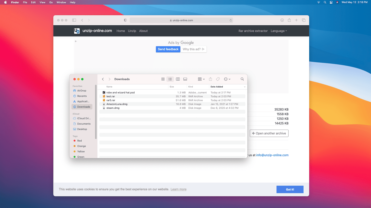 If you have a small RAR file to extract and don't want to install an app, you can use an online extractor like Unzip Online. It's also a good option if you're on a Mac at work or school where you can't install apps, but you still need to open a RAR file.