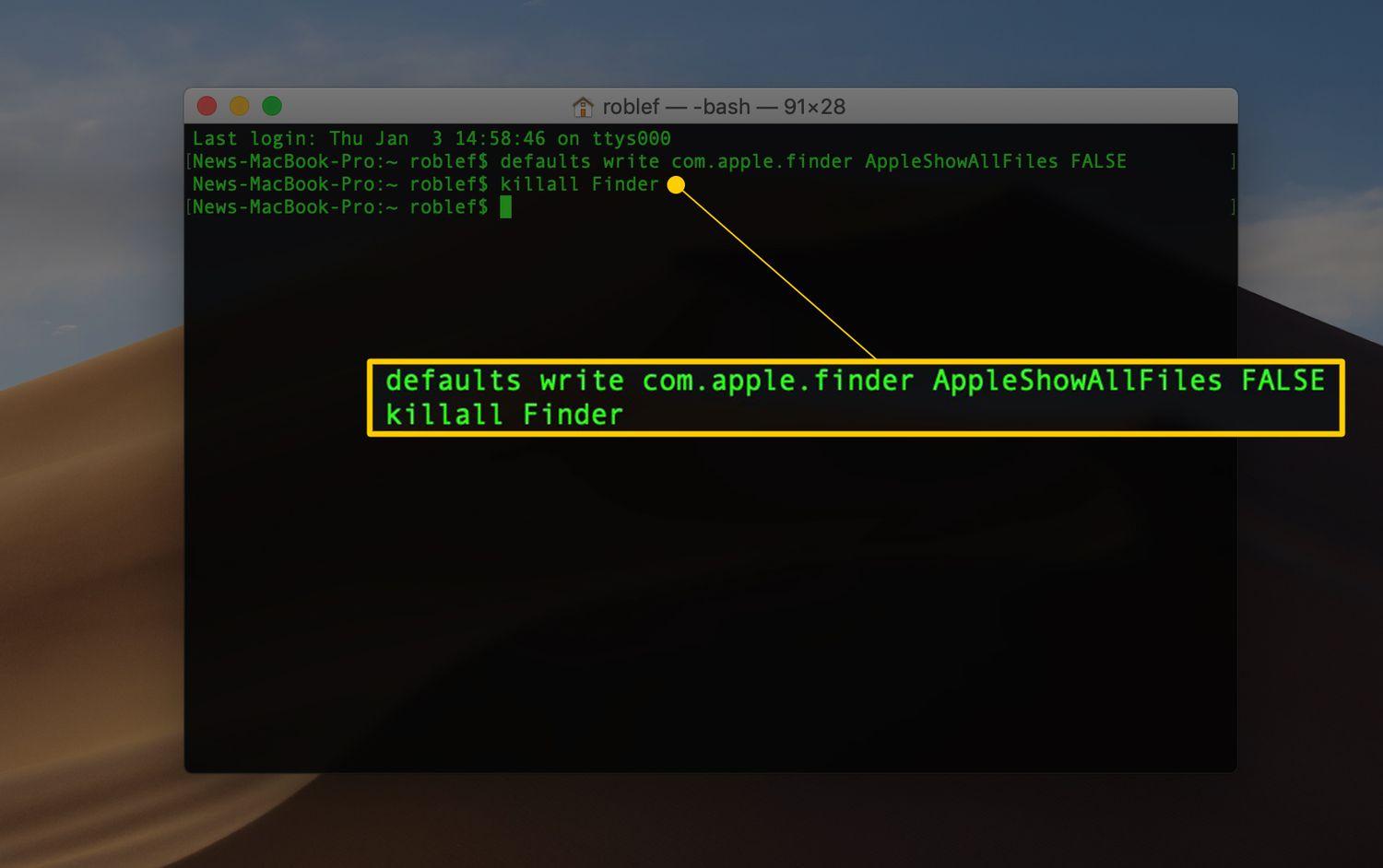 defaults write com.apple.finder AppleShowAllFiles FALSE