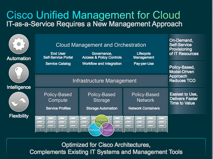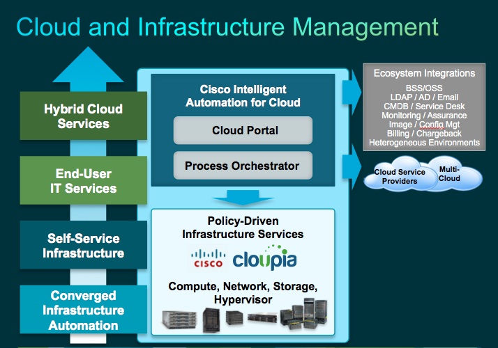 Ever since the news broke about Cisco's intent to acquire Cloupia, I've been asked how this fits with our other data center and cloud management software products. In short, Cloupia's strength is in converged infrastructure management and it's a powerful complement to Cisco Unified Computing System (UCS) Manager as well as our cloud management software.
