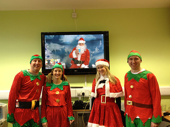 Visits to hospitals in England, Wales, Scotland, Ireland, and Northern Ireland began on December 3 and will conclude on Wednesday, December 12. Each visit requires two systems engineers, one account manager to assist with the set-up of the technology, one Mrs. Claus, and four elves.
