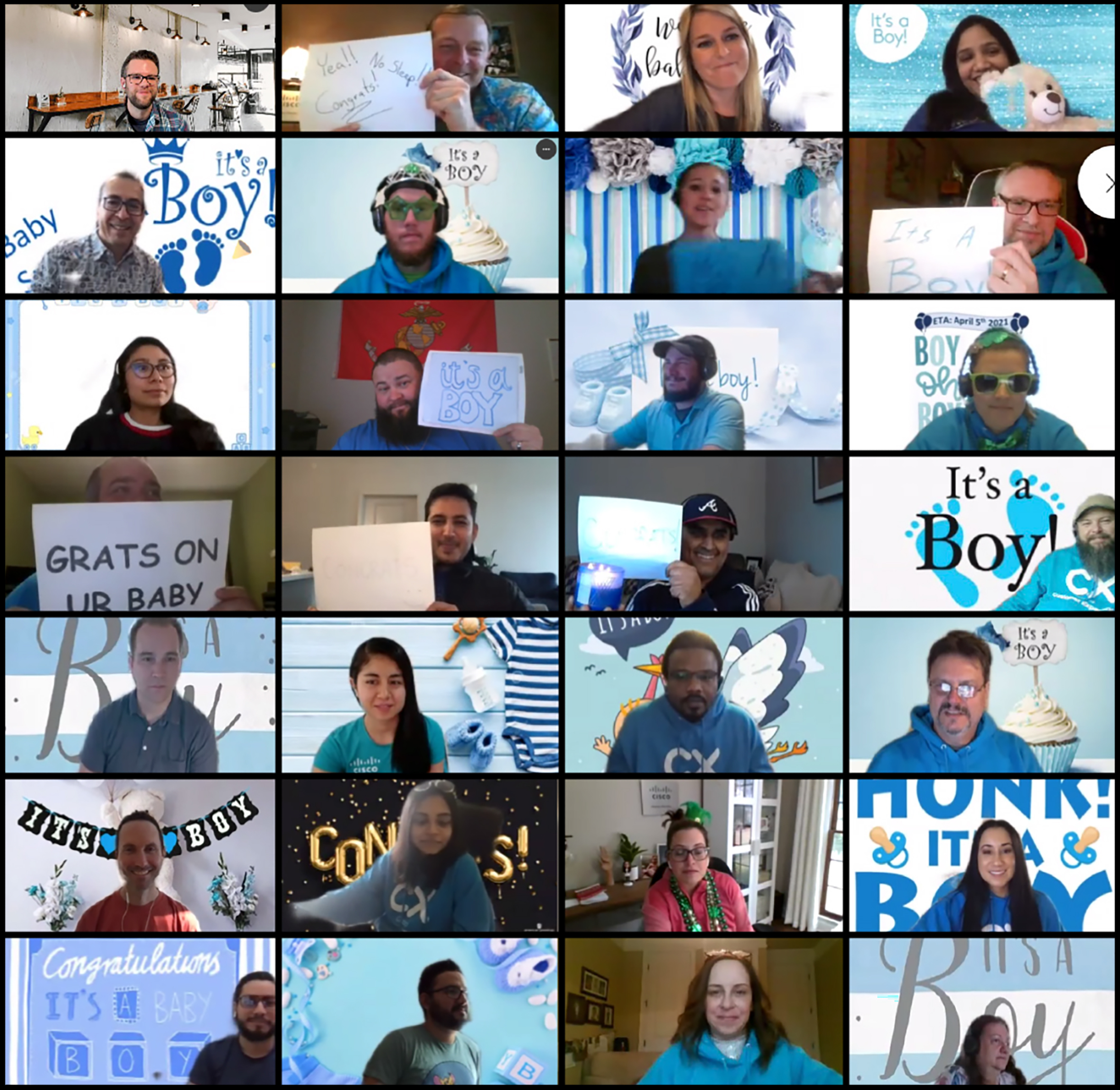 As I walked back upstairs to my office, I sat back down to find every single team member had either changed their background to celebrate the baby boy coming into my life or held up handmade signs to their camera. For the second half of the meeting, the leadership team led a fun and engaging conversation about what parenthood means to them.